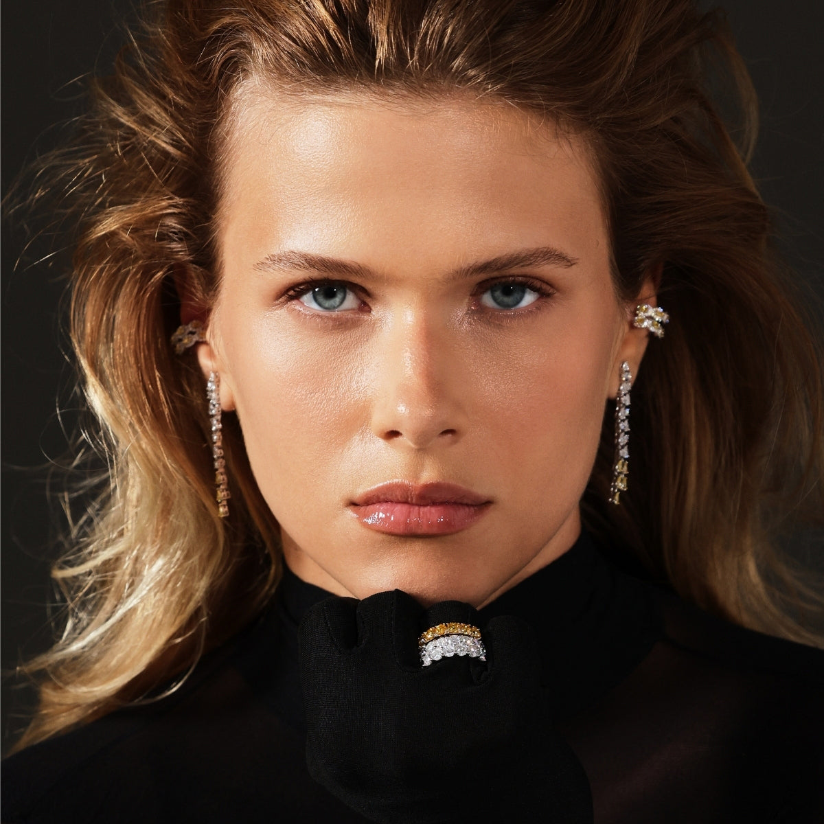 Duas linhas se encontram em um desenho contínuo e bem definido, criando um jogo de brilho equilibrado ao redor do dedo. O Anel Aliança Duo Glam é uma joia feminina e confiante, pensada para acompanhar a mulher com elegância e presença constante.