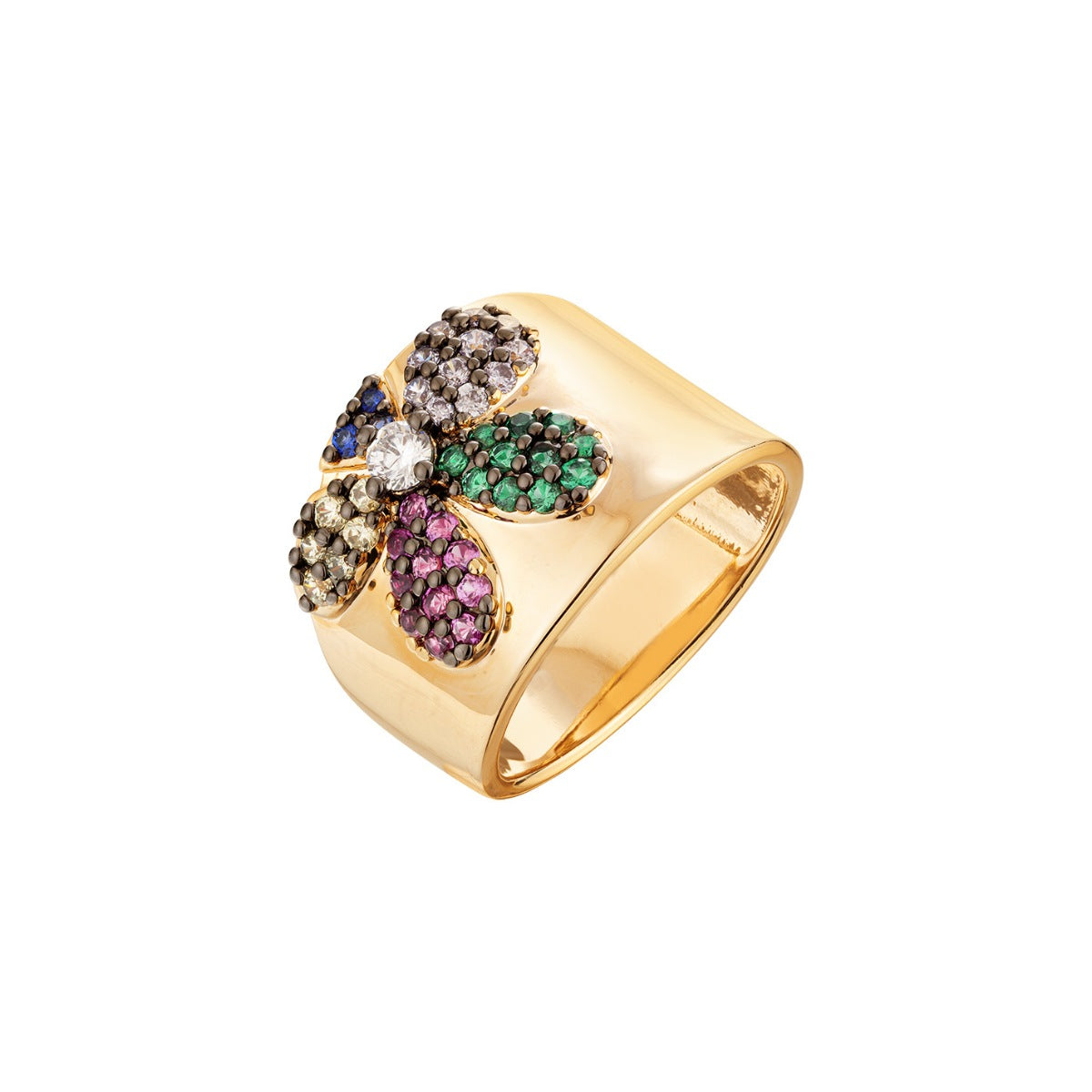 Anel em metal, com banho ouro 18k e microcravação de zircônias nas cores citrino, rosa, esmeralda, ametista, safira e cristal.