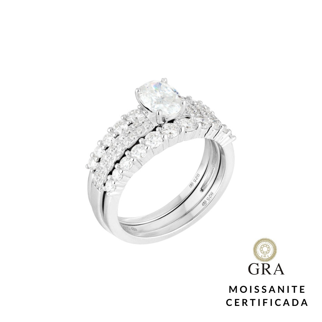 Anel trio solitário Moissanite 1.0ct, em Prata 925 com banho de ródio. Esta Joia acompanha o certificado internacional "GRA Jewellery" da Moissanite, garantindo a qualidade e autenticidade da(s) pedra(s).