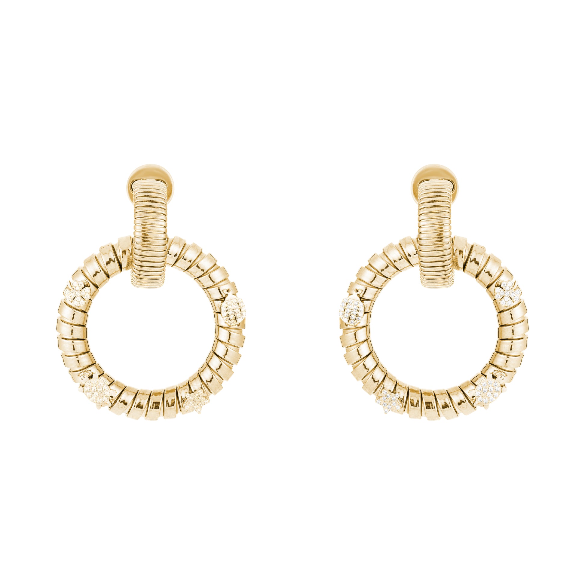 Argola com zircônia na cor cristal, banho de Ouro 18k.