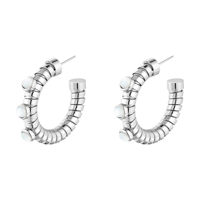 A textura Tubogas encontra o brilho suave da madrepérola, criando uma argola moderna e luminosa. Um contraste elegante que traz leveza e personalidade ao look.