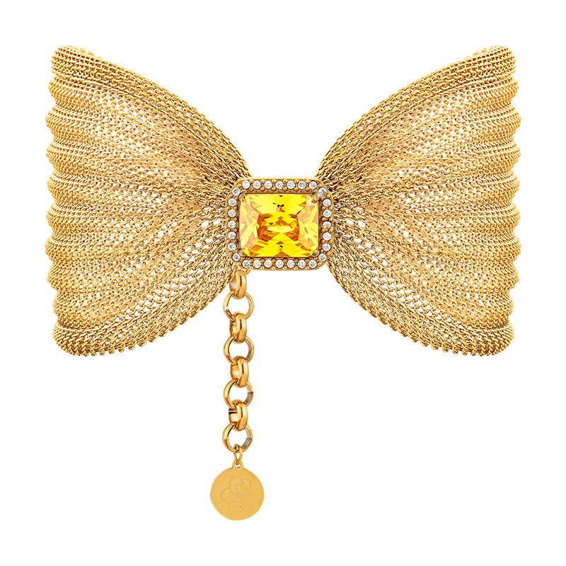 Pulseira malha banho ouro 18k, com zircônia na cor citrino e microcravação na cor cristal.