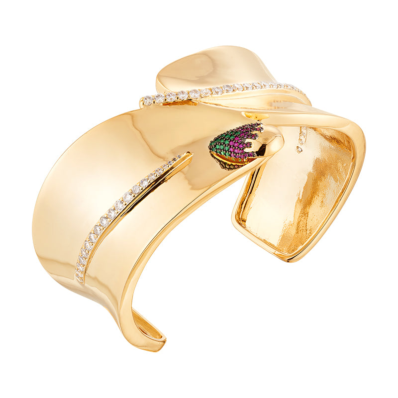 Bracelete em metal com banho de ouro 18k, zircônias nas cores pink diamond, esmeralda e cristal.