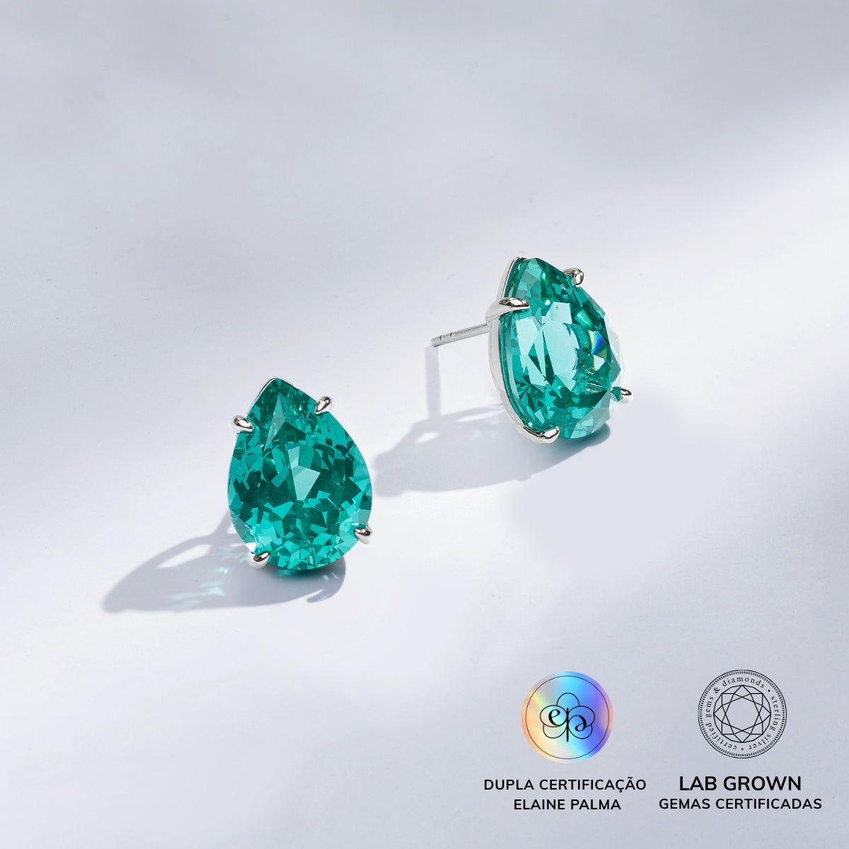 Brinco com Turmalina Paraíba Lab Grown, lapidação de gota, prata 925 com banho de ródio.