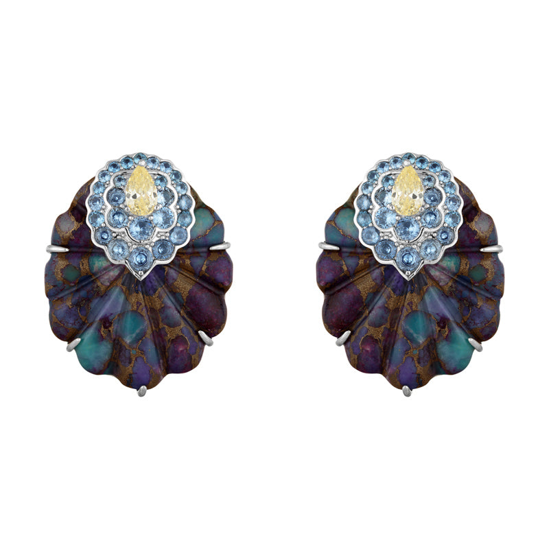 Brinco em turquesa, com zircônia na cor topázio e citrino, banho de ródio.