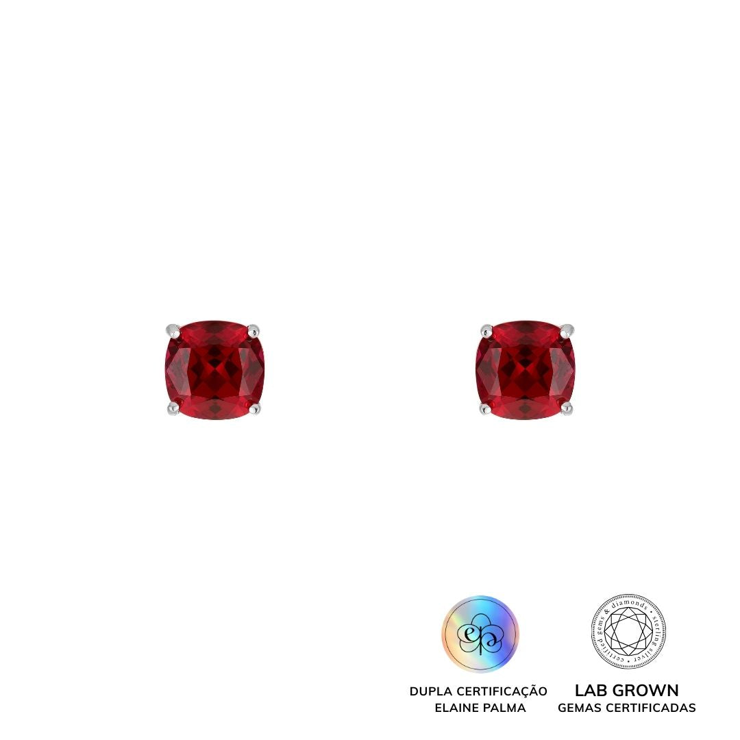 Brinco com Rubi Lab Grown, lapidação radiante, em prata 925 com banho de ródio