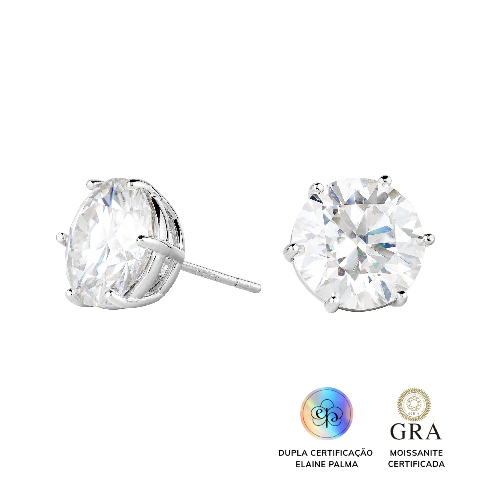 Brinco Solitário Moissanite 5.0 ct, com 6 garras de 11mm, em Prata 925 com banho de ródio. Esta Joia acompanha o certificado internacional "GRA Jewellery" da Moissanite, garantindo a qualidade e autenticidade da(s) pedra(s).