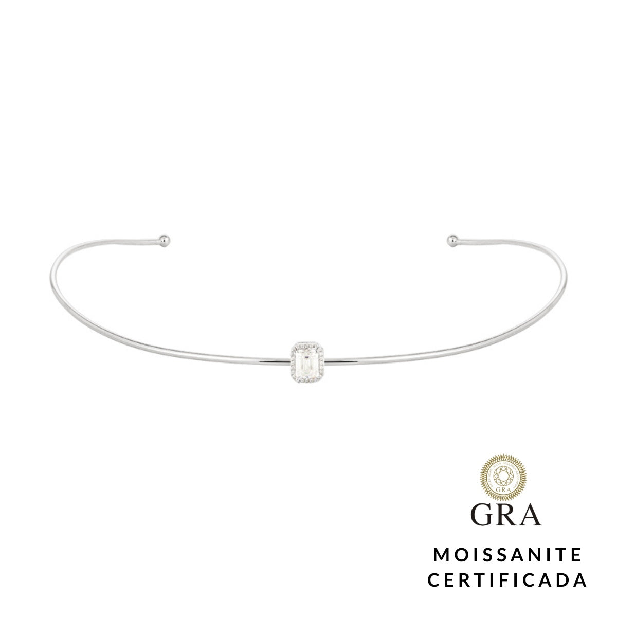 Colar aro Moissanite 2.14ct, em Prata 925 com banho de ródio. Esta Joia acompanha o certificado internacional "GRA Jewellery" da Moissanite, garantindo a qualidade e autenticidade da(s) pedra(s).