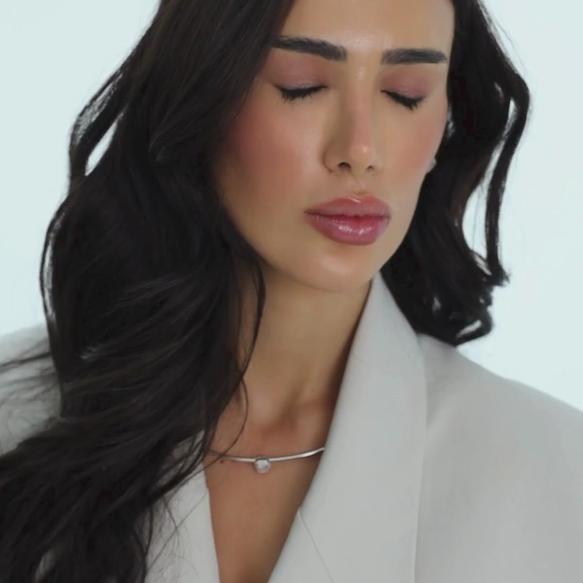 Minimalista, sofisticada e imponente. O Choker Aro da Coleção Alma é a moldura perfeita para revelar o brilho da sua essência. Com design clean e atemporal, ele valoriza o colo e combina com qualquer ocasião, refletindo a luz única das moissanites Elaine Palma.
