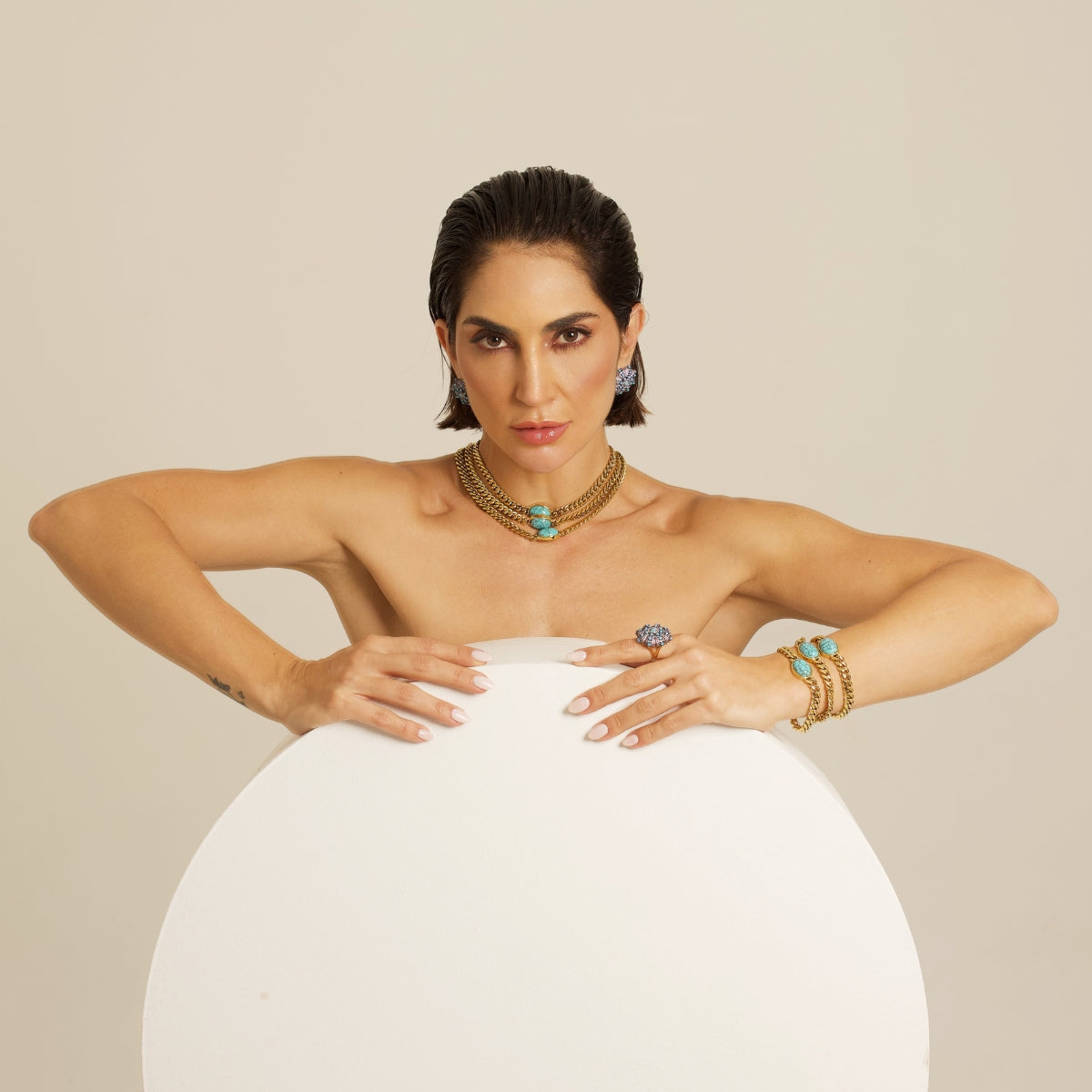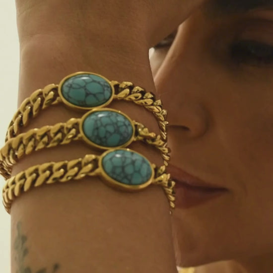 O Colar Caminhos combina elos fluidos e o tom vibrante da turquesa, criando um brilho leve e elegante que acompanha você com frescor e personalidade.