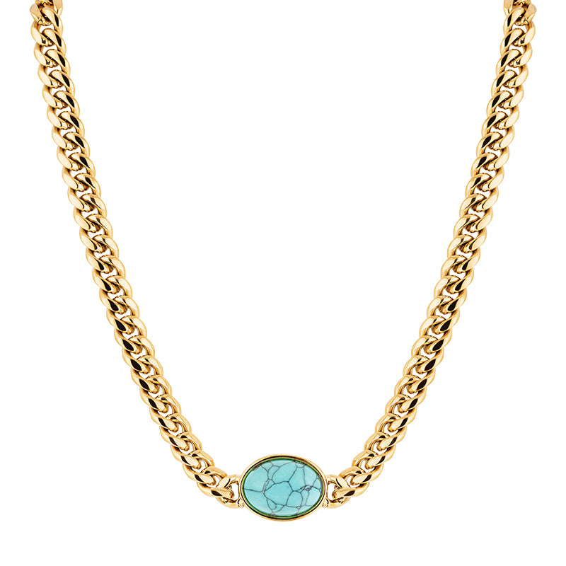 Colar elos, com turquesa em banho de ouro 18k.